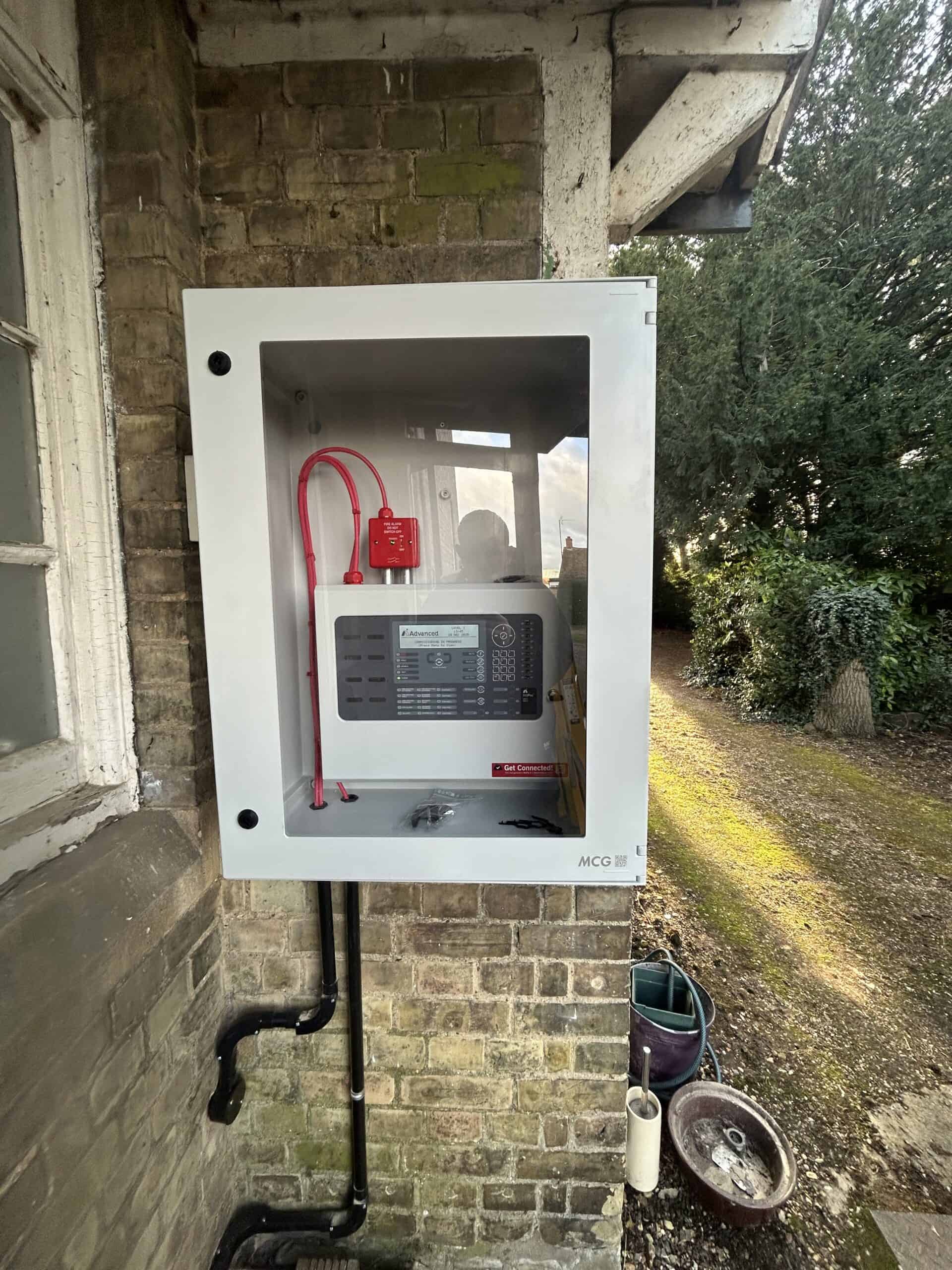 - Advanced MX5000 addressable fire alarm panel, mounted within a weatherproof external enclosure